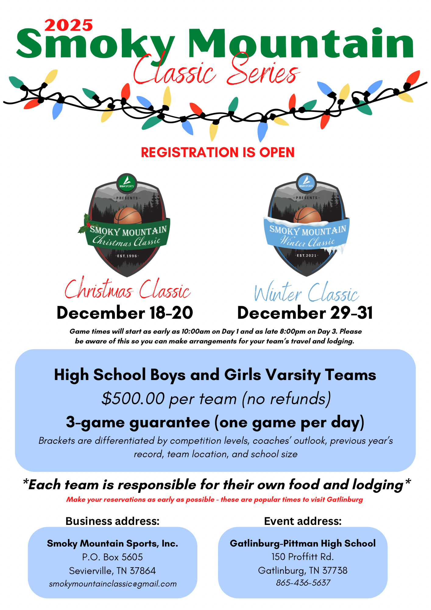 SMOKY MOUNTAIN CHRISTMAS CLASSIC - BOYS REGISTRATION